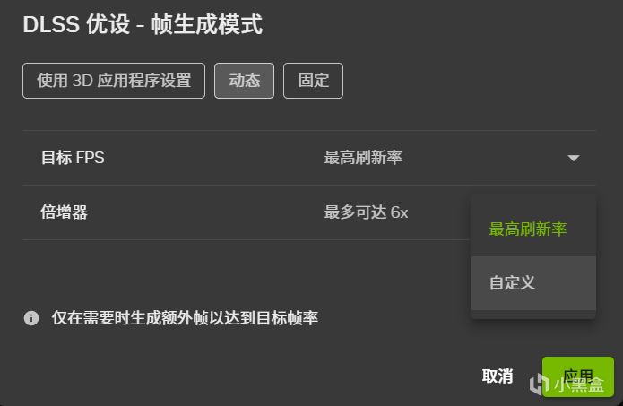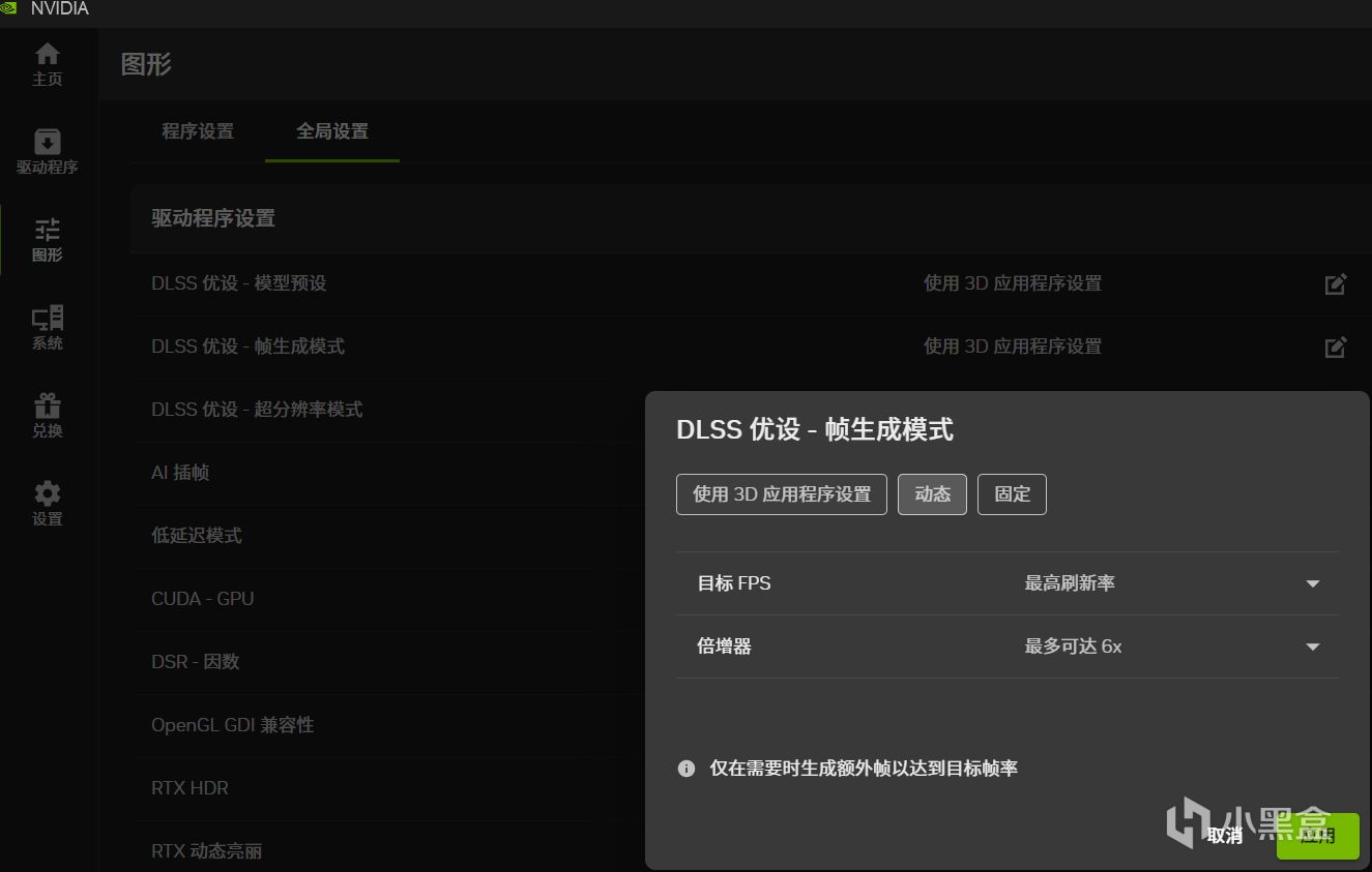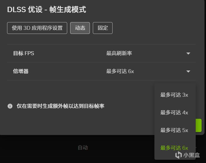 目前該功能尚未原生全覆蓋遊戲,需依託英偉達客戶端手動解鎖。玩家要先在客戶端開啓公測與實驗性功能,再在圖形設置界面手動修改 DLSS 幀生成的強制選項。客戶端內現已並存動態模式與固定倍率模式,固定模式保留了舊版手動調節倍率的操作邏輯。