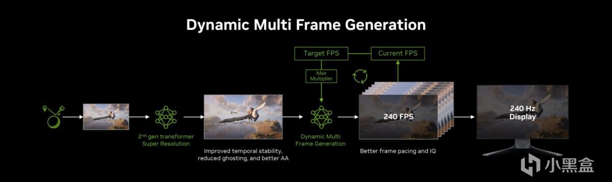 英偉達介紹,該功能只會按需生成幀數,剛好滿足預設幀率上限或顯示器刷新率需求,告別遊戲全程鎖定單一插幀倍率的老舊邏輯。