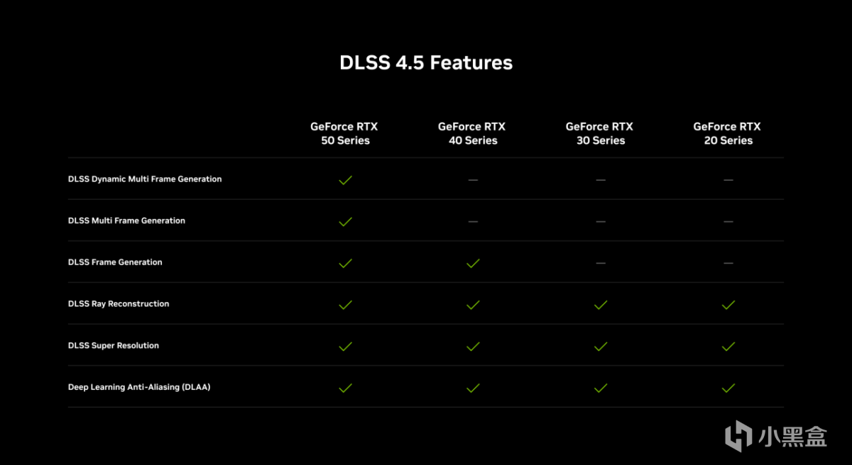 新模型利用了特定遊戲引擎可用的額外 UI 緩衝區,因此能夠在激活 DLSS 動態多幀生成、DLSS 多幀生成或 DLSS 幀生成時,更智能地管理靜態 UI 的渲染。截至 2026 年 3 月 31 日,部分支持 DLSS 4.5 的遊戲包括“戰地風雲 6 (Battlefield 6)”、“無主之地 4 (Borderlands 4)”、“龍騰世紀:影障守護者 (Dragon Age: The Veilguard)”、EA SPORTS F1® 25、“戰神:諸神黃昏 (God of War Ragnarök)”、“霍格沃茨之遺 (Hogwarts Legacy)”、“奪寶奇兵:古老之圈 (Indiana Jones and the Great Circle™)”、“漫威蜘蛛俠 2 (Marvel's Spider-Man 2)”、“怪物獵人:荒野 (Monster Hunter Wilds)”、“星球大戰:亡命之徒 (Star Wars Outlaws)”、“上古卷軸 IV:湮滅重製版 (The Elder Scrolls IV: Oblivion Remastered)”和“天外世界 2 (The Outer Worlds 2)”。