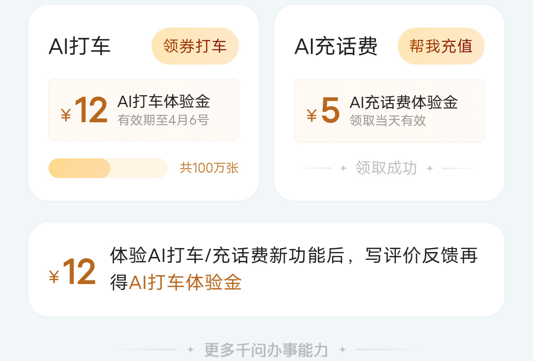 想要领取这个话费充值券的,需要下载「千问app」,下载完后打开APP,点击左上角「千问办事」