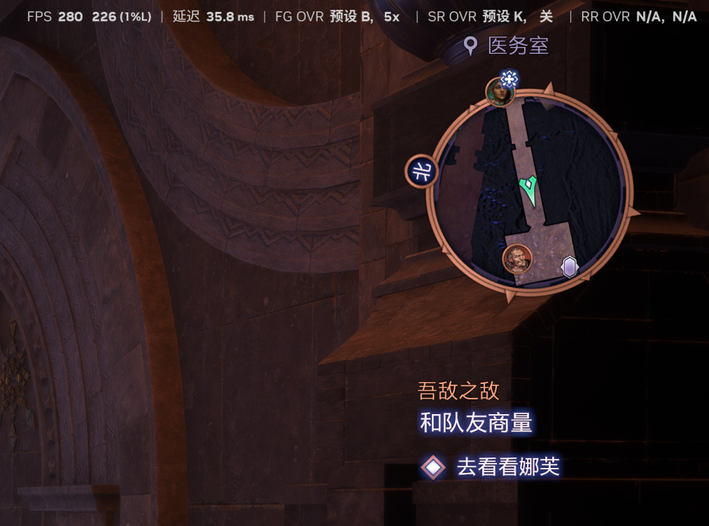 《龍騰世紀4:影障守護者》右上角地圖實際上也進行了半透明處理,開啓預設B之前,移動畫面會明顯看到UI邊緣有明顯的模糊感,在DLSS 4.5的預設B中,UI邊緣表現穩定,沒有了之前移動模糊的問題。