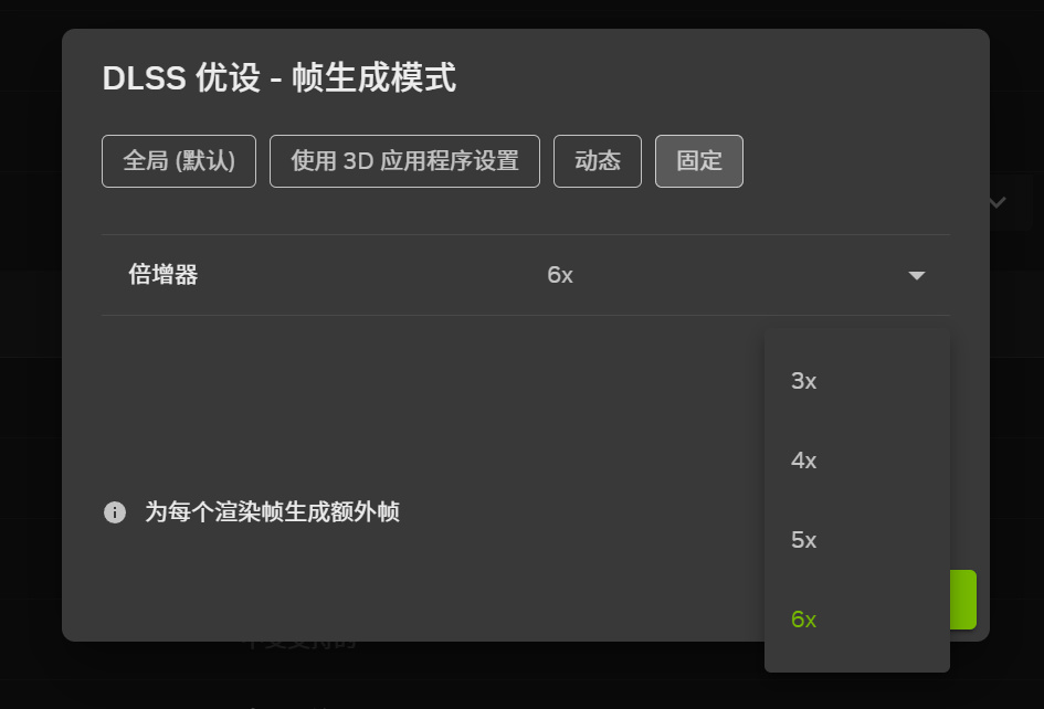 對應動態多幀生成,NVIDIA App中的DLSS優設-幀生成模式其實還提供了3X、4X、5X和6X的固定幀生成倍數,這也很好地幫助我們對比每個檔位中游戲的實際表現。