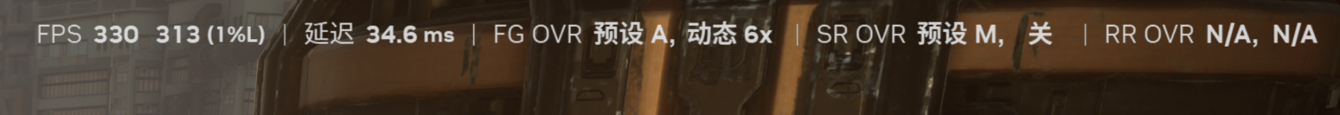 《劍星》是筆者順手嘗試的遊戲,沒想到體驗效果意外地好。4K最高畫質下6X多幀生成可以做到330FPS,5X以上可以輕鬆喫滿4K 240Hz顯示器,同時延遲維持在30ms到40ms之間。