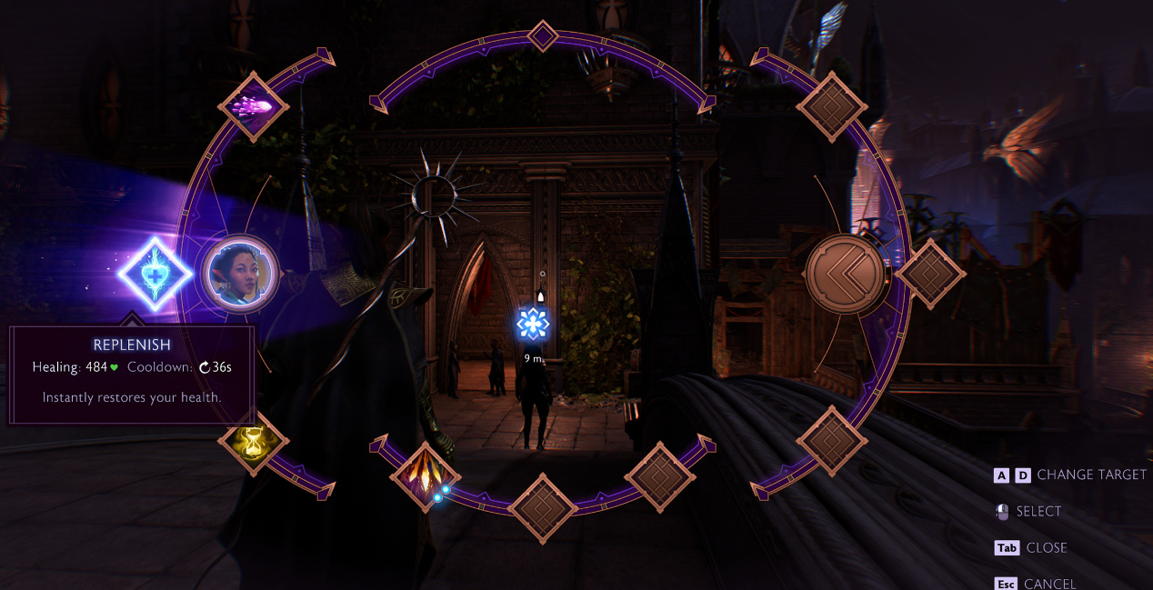 在實際體驗中,預設B模型還對《賽博朋克2077》的HUD以及《霍格沃茨之遺》的透明UI 都有很好的支持。比如《霍格沃茨之遺》中通過呼出菜單,半透明背景貼圖錯誤的模糊感消失殆盡,取而代之的是清晰的磨砂玻璃顯示。