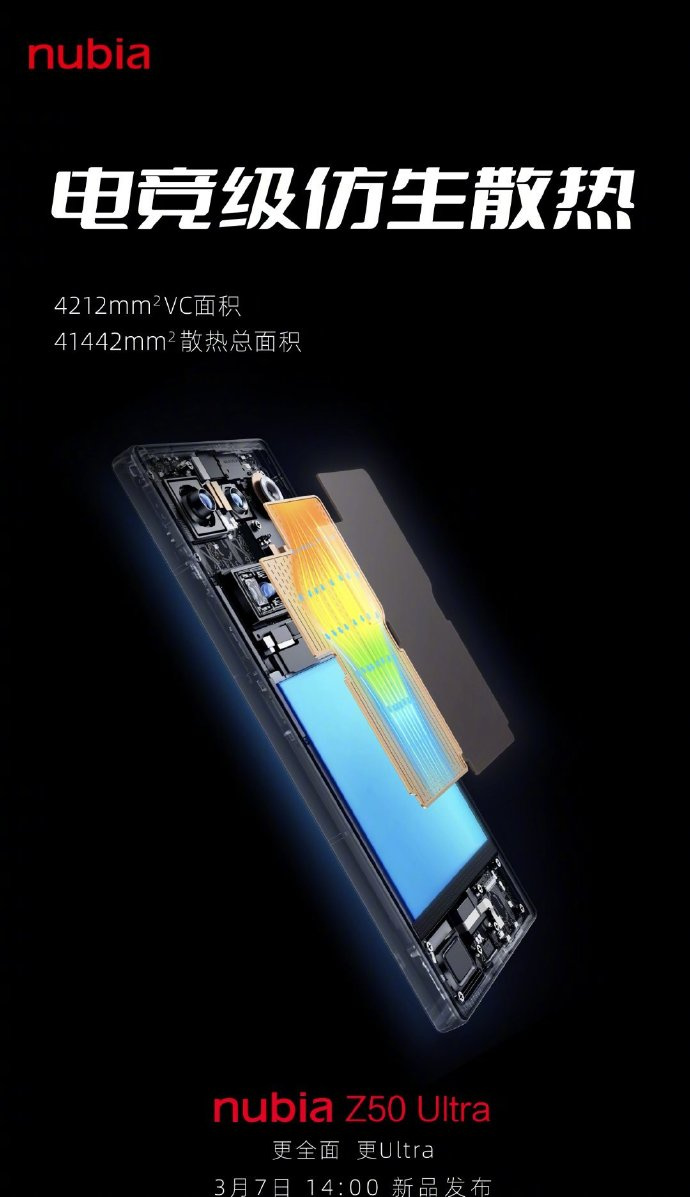 努比亚 Z50 Ultra 将于 3 月 7 日 14:00 发布。配置方面,努比亚 Z50 Ultra搭载骁龙 8 Gen 2 处理器,配备 LPDDR5X 内存和 UFS 4.0 存储,搭载电竞级仿生散热系统,拥有 41442 ㎜² 散热总面积。