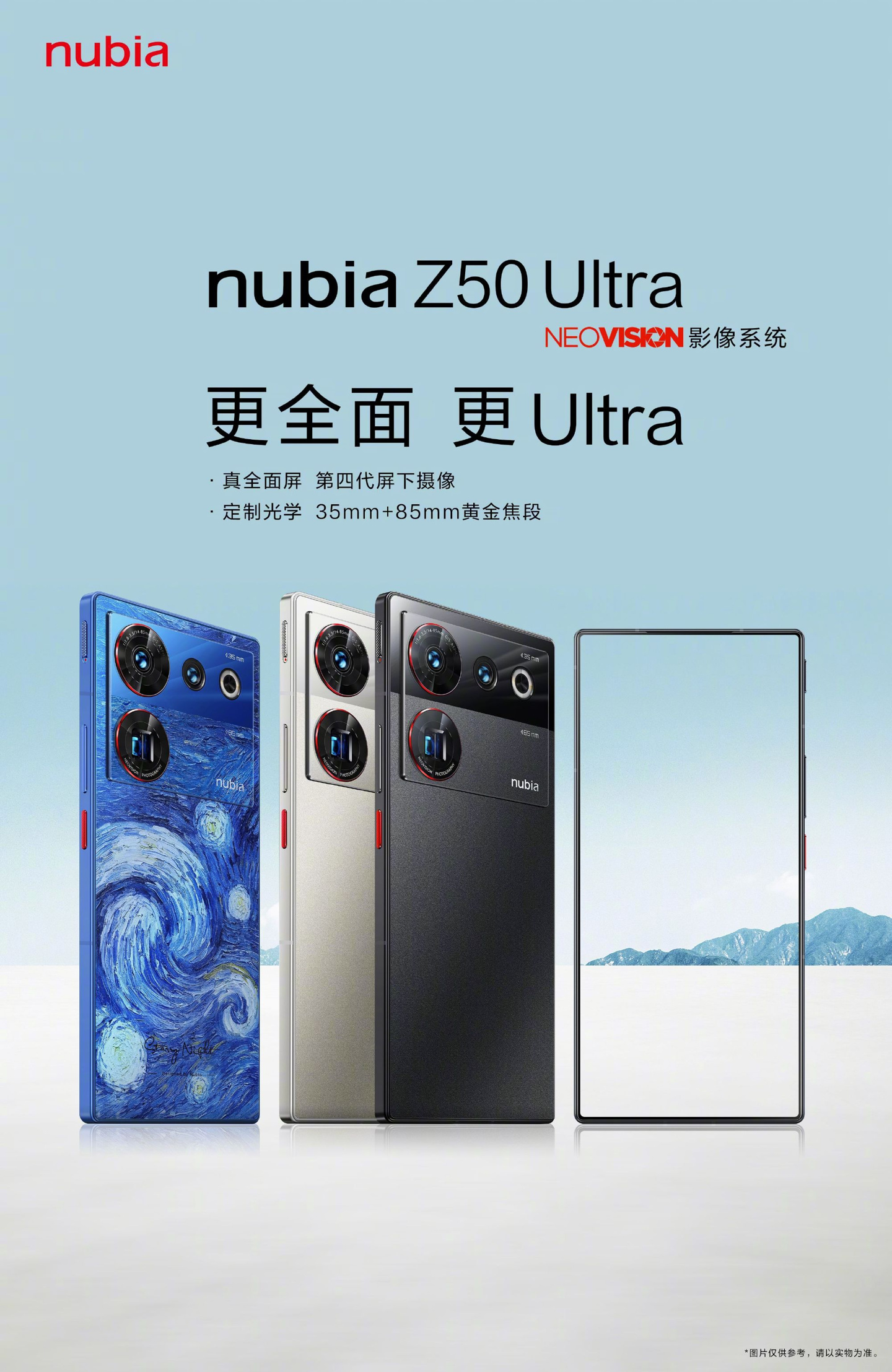 影像方面,努比亚 Z50 Ultra搭载第四代屏下摄像技术,屏下摄像头采用定制 2.24μm 超大像素传感器,拥有 1600 万像素、f / 2.0 大光圈;后置全新 35mm+85mm 黄金镜皇组合,包括 85mm 黄金人像焦段,6400W 潜望长焦镜头;35mm 黄金人文焦段,搭载超大光圈。