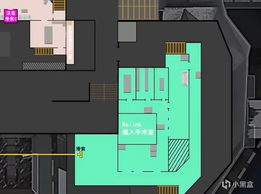 我们从巴别塔东门二楼进去,左转第一个门是滑索上顶层,第二个门就是进医疗区,然后可以在relink手术室门口看看保险旁边的水台有没有刷非心,或者医疗床上有没有大红。