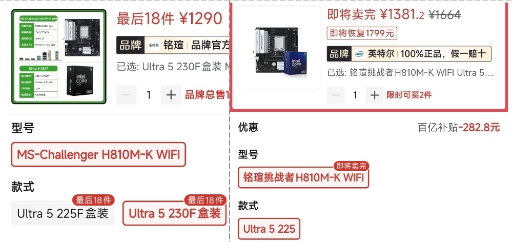 支持DDR4的英特尔CPU+主板套装涨价了,因为DDR5的降价,加上Ultra更便宜了,在都是16G内存条情况下,部分型号可以被Ultra2代替代。