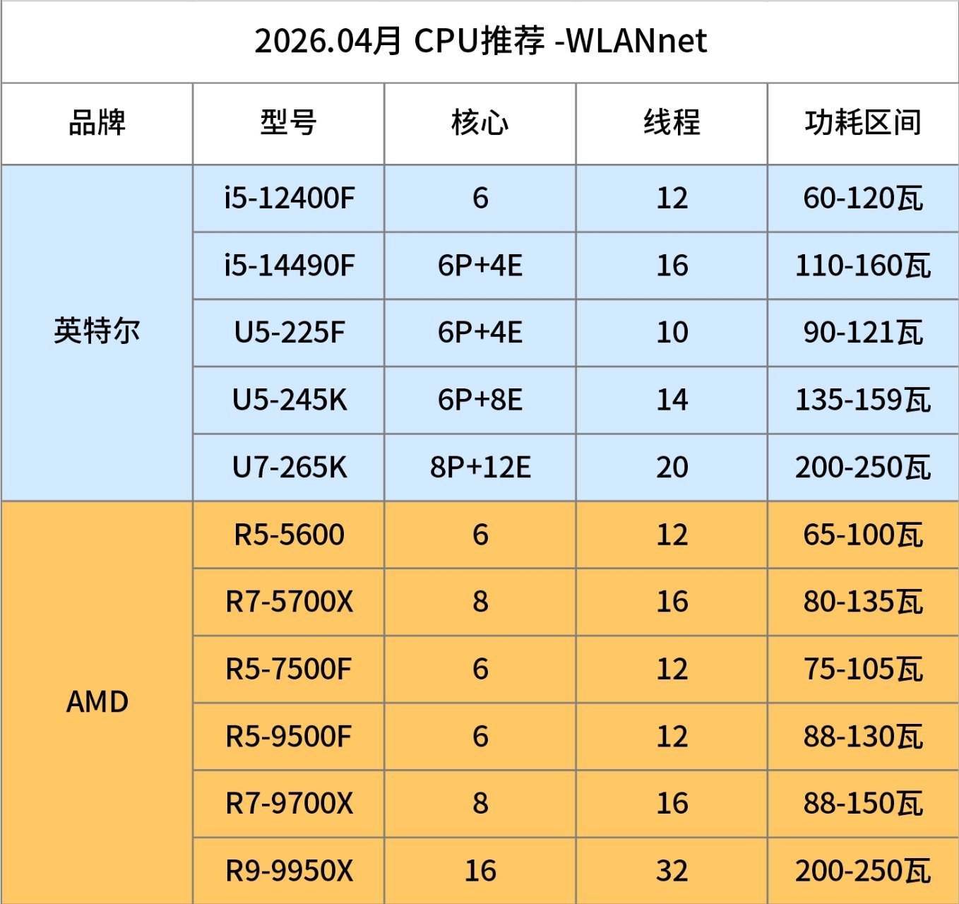 R5-7500F、R5-9500F、R7-9700X、R9-9950X