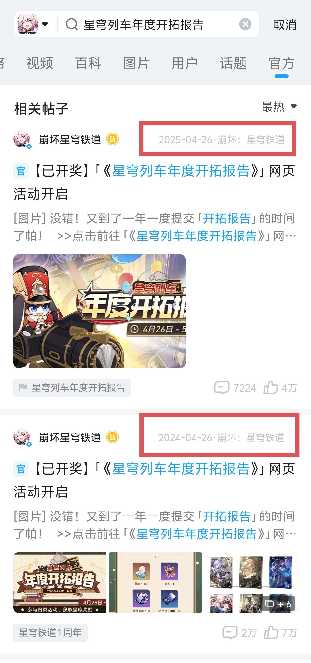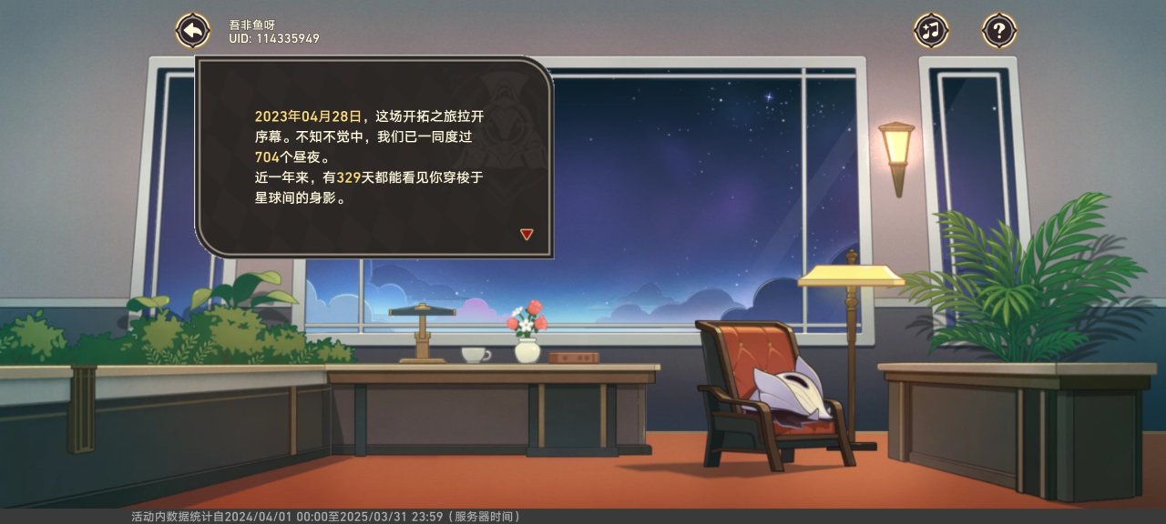 一周年回顾链接:https://act.mihoyo.com/sr/event/e20240426anniversary-so6swc/index.html