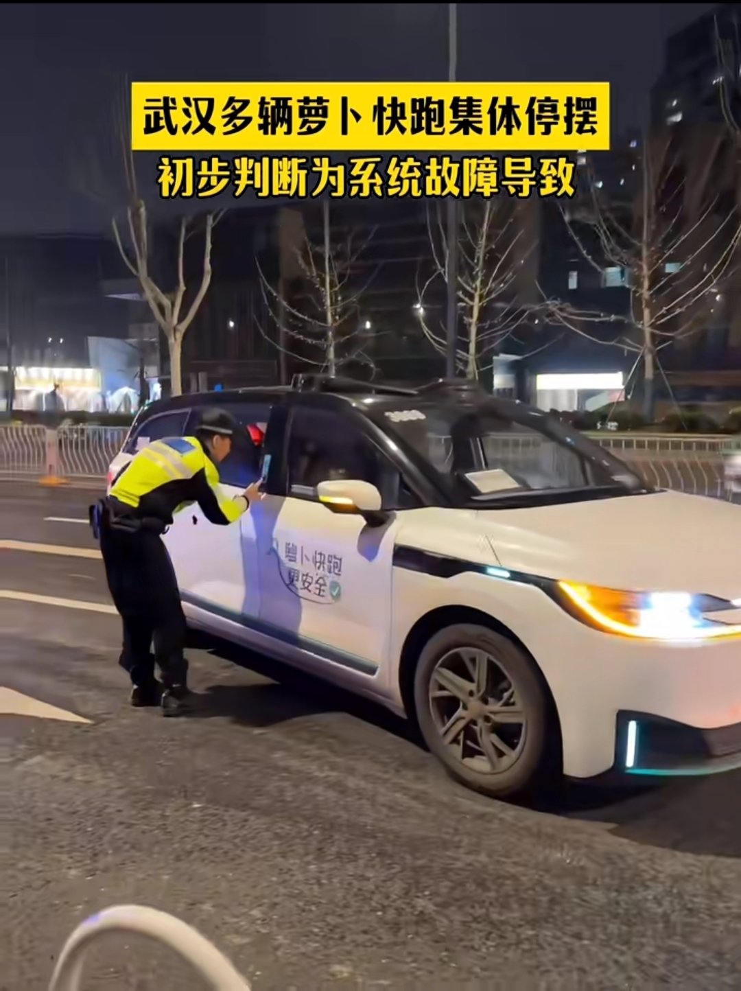 據相關人士透露:“蘿蔔快跑系統出故障了,是公司的問題,有百八十臺。乘客按個按鈕,車門可以開,但是人在環線上下不來。”