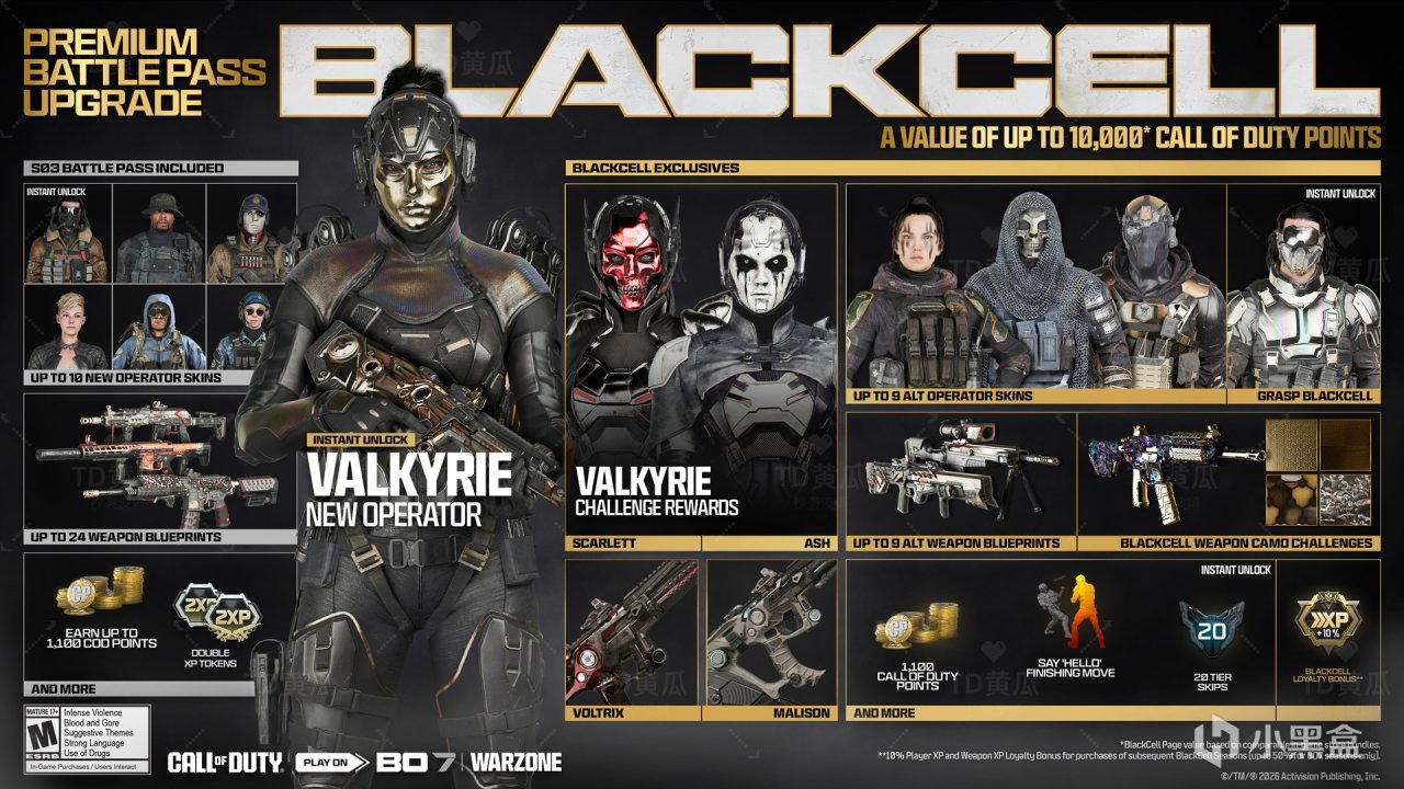 黑金擁有者可以通過專屬頁面立即解鎖:特戰兵瓦爾基里(挑戰解鎖額外2個造型)、Razor 9mm究極藍圖(挑戰解鎖額外2個藍圖)、1100 CP、處決、表情、HUD主題、戰隊標籤、10%經驗值忠誠加成。