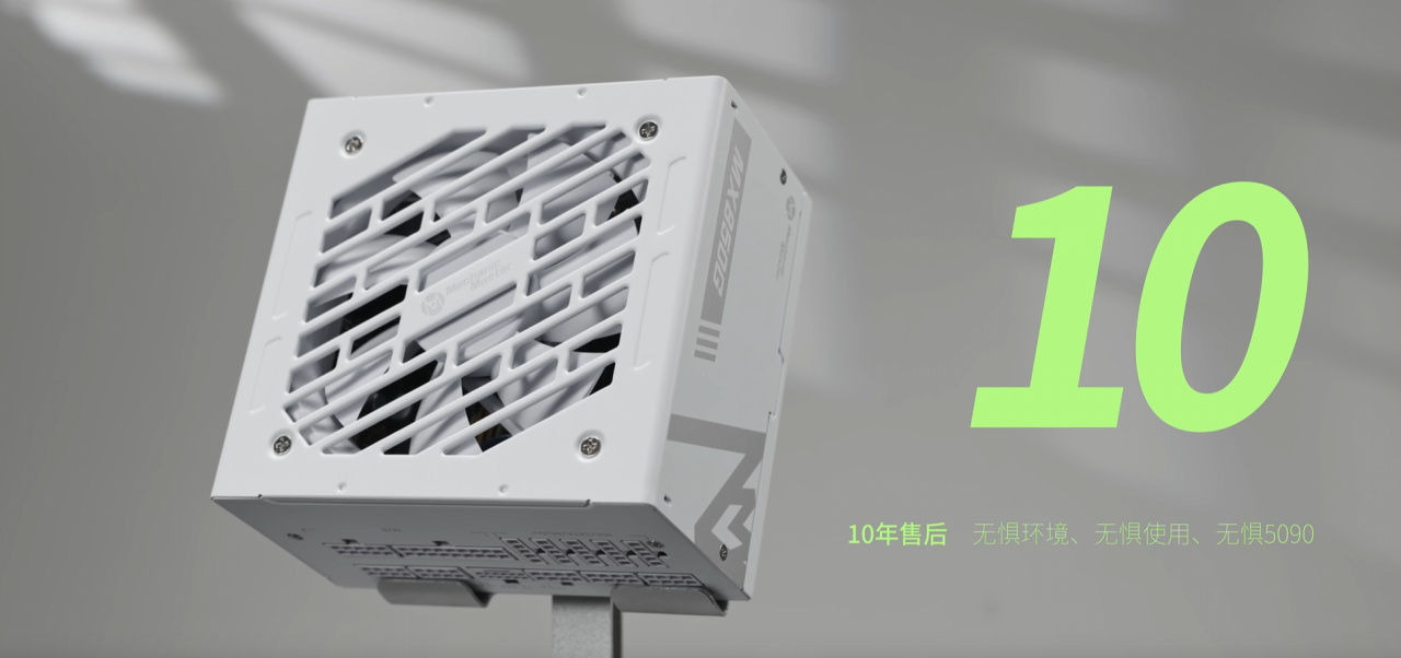 電源爲機械大師MX850G 850W的白金全模組電源,十年質保,全日系電容+主動PFC設計,轉換效率高達92%以上,靜音風扇搭配智能溫控,在小機箱內也能保持穩定供電,完全滿足RTX 4070Ti與9600X的功率需求