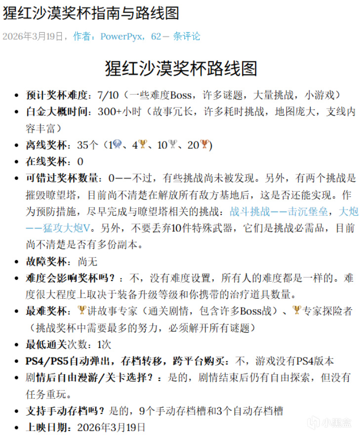 据PlayStation奖杯攻略网站PowerPyx估算,开放世界游戏《红色沙漠》解锁白金奖杯耗时或将超过300小时,成为今年最耗时的白金成就之一。