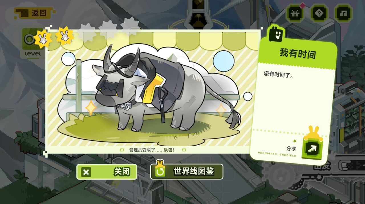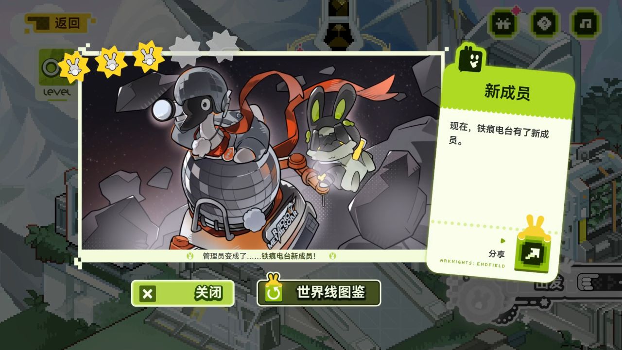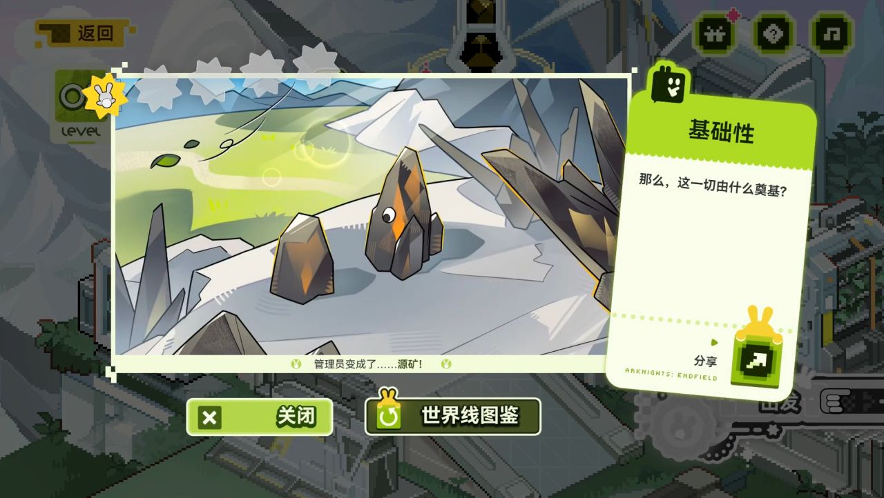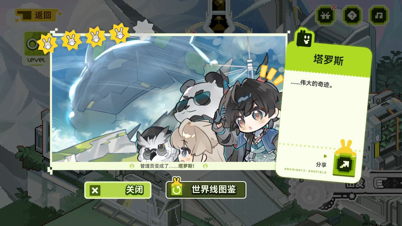 此時會提示本階段探索已經全部完成,點擊世界線合成臺,隨便找點合成,我選擇了以上幾個合成。獲得了綻放圖鑑,之後去旅行工作臺點擊回溯,再點主界面的出發,把之前沒收集到的道具全收集。