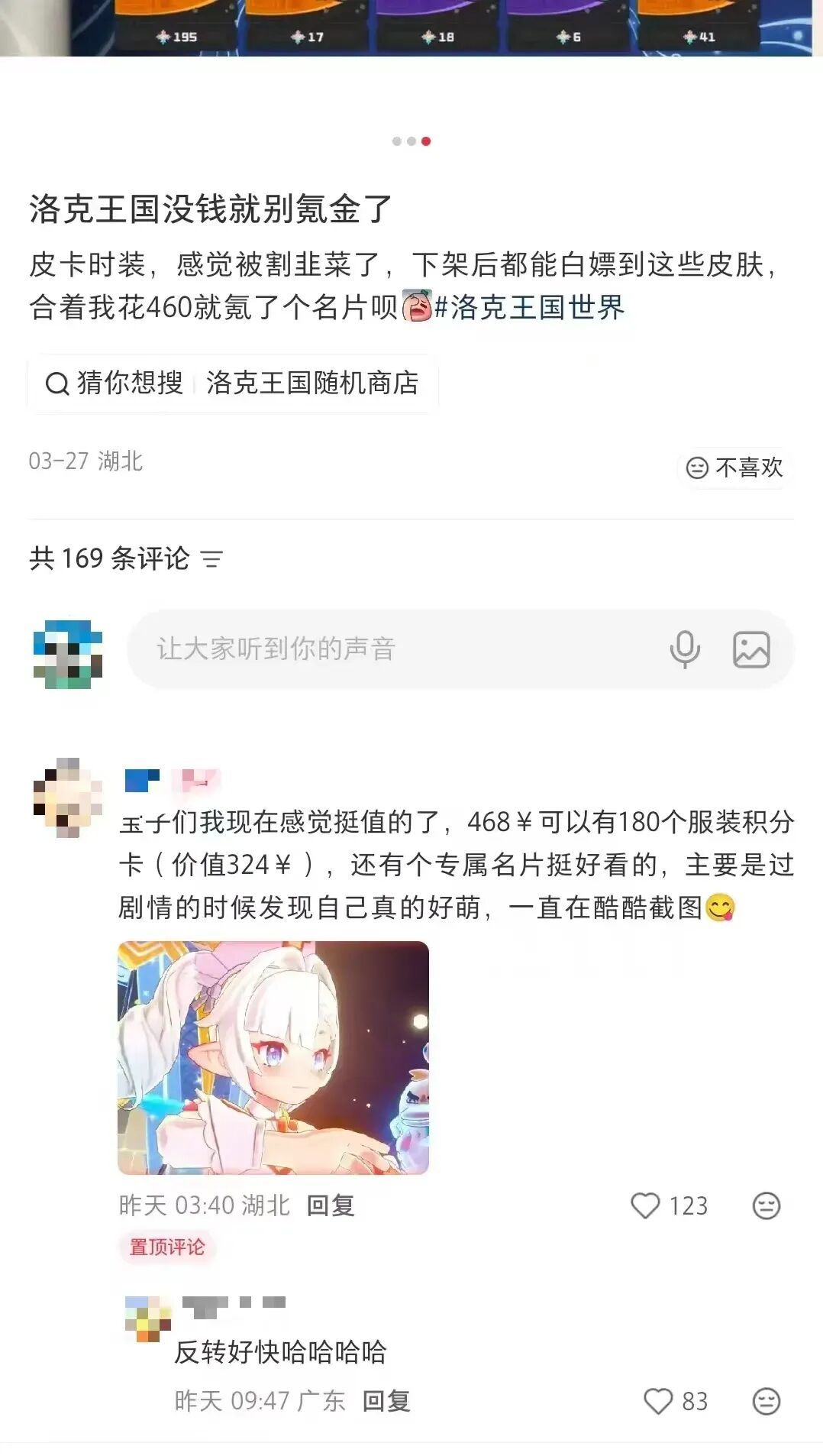 而玩家社区中同时也聚焦外观话题展开了热烈讨论,围绕穿搭建议、外观种草的评论和帖子层出不穷,“洛克暖暖”的讨论氛围一度让我以为走错了片场,这也促使更多玩家关注到游戏的外观系统,直接推动消费,或增加了未来可能消费的潜在用户人群。