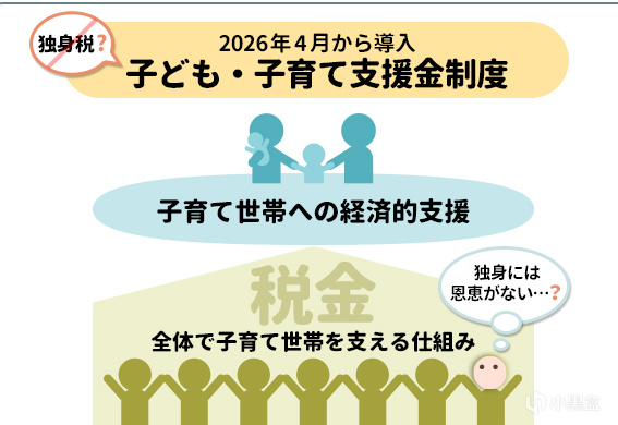 大意是:新的“兒童及育兒補助金制度”將於2026年4月推出。這是政府爲應對出生率下降而採取的措施之一,通常被稱爲“單身稅”。