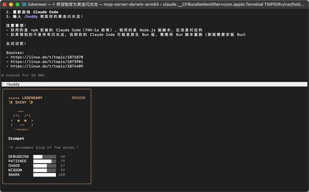 我要講的是Claude Code居然還有虛擬寵物功能。。。