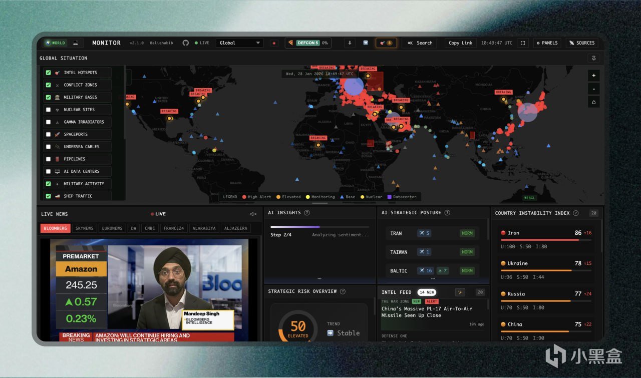 • 一站式全球監控面板,AI智能摘要新聞,地緣局勢一眼清