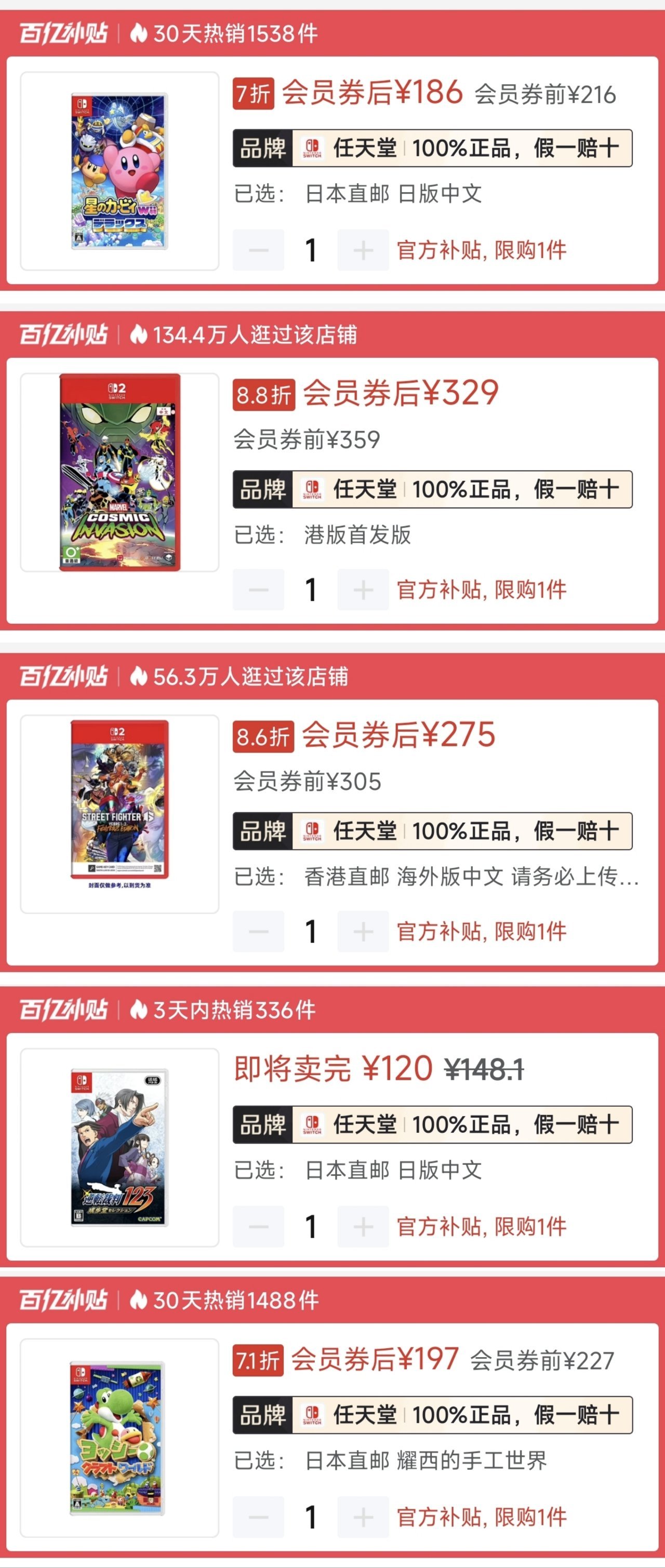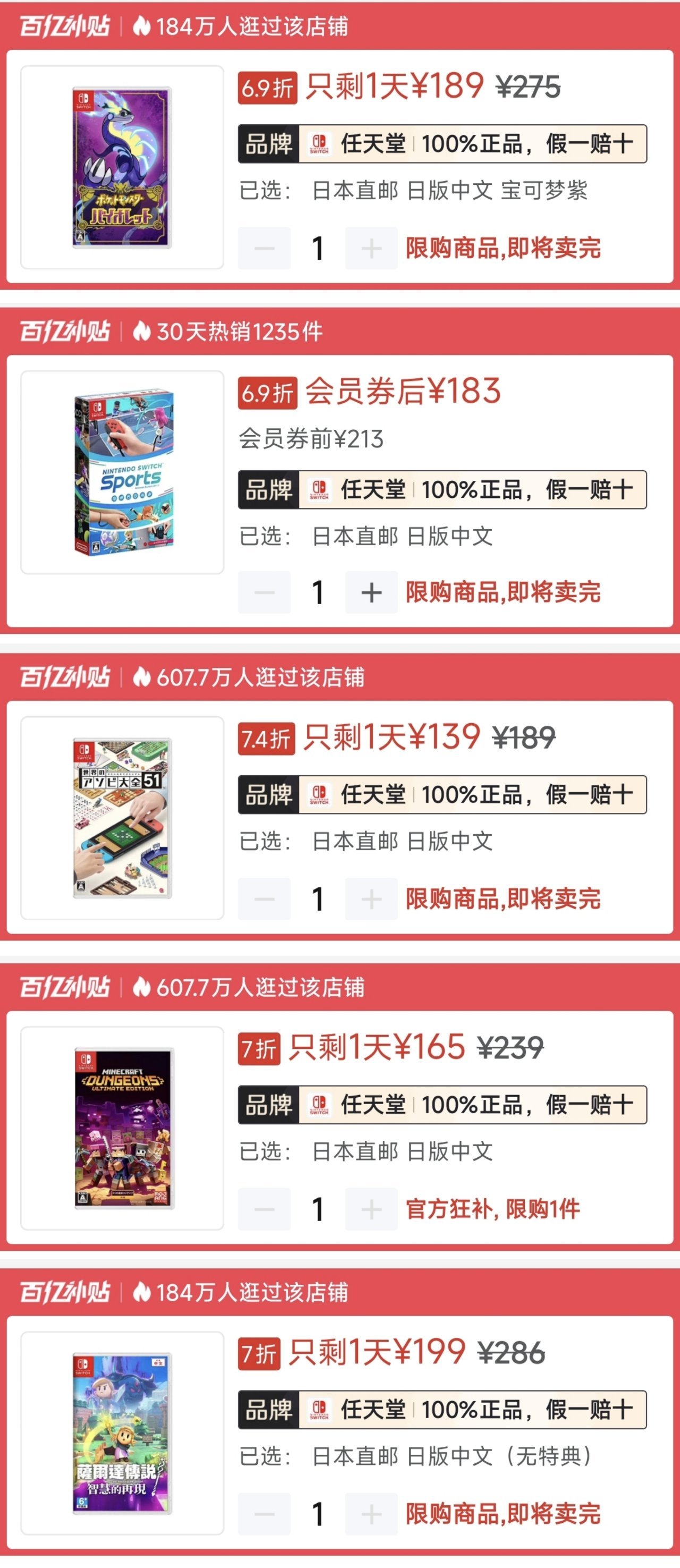 1.《任天堂運動》🇯🇵183|史低169