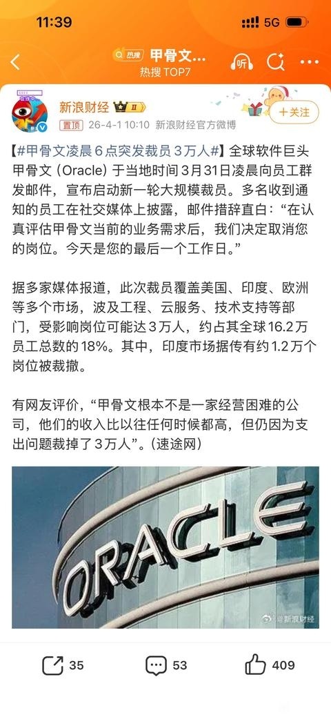 有網友評價,“甲骨文根本不是一家經營困難的公司,他們的收入比以往任何時候都高,但仍因爲支出問題裁掉了3萬人”。