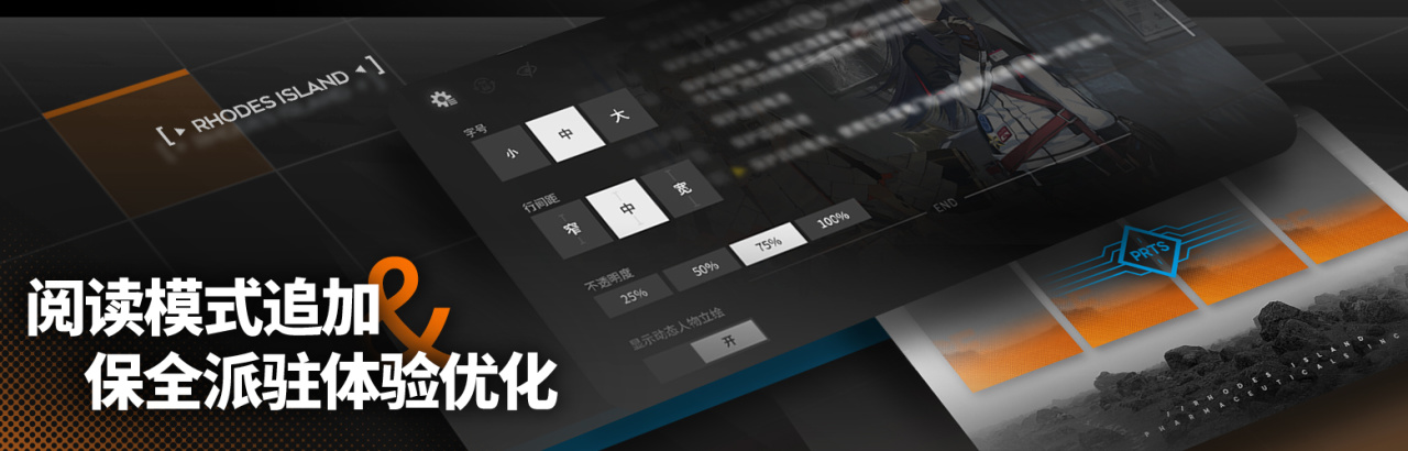 閱讀模式,支持字號與字間距的調節,文字區域還可擴展至半屏顯示。保全派駐從4月16日 4點開始,週期任務的難度會適當下調,且可以通過全權委託來完成周期任務;對於復刻的保全關卡,優化後也將可以根據最高記錄的全權委託來完成,支持同時獲取保全關卡的週期清理記錄、關卡報酬和週期任務的獎勵