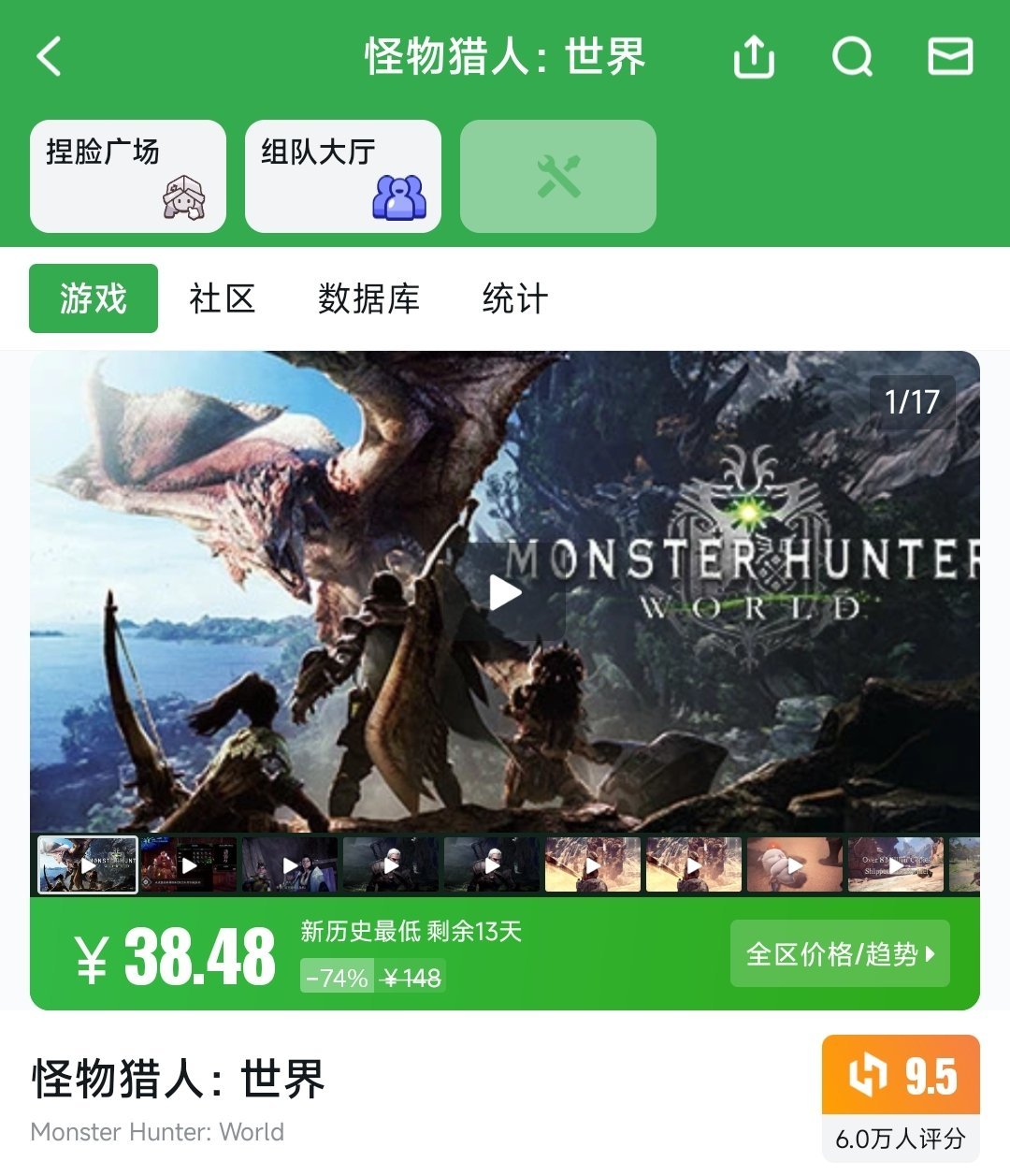 原價148元,折後僅需38.48元,創下新歷史最低價,剩餘優惠13天,卡普空打造的共鬥動作神作,豐富的怪物生態、深度的配裝系統、流暢的狩獵體驗,支持多人聯機,無論是 solo 玩家還是開黑好友,都能在新大陸中享受狩獵的樂趣,不到40元的價格閉眼入不虧。