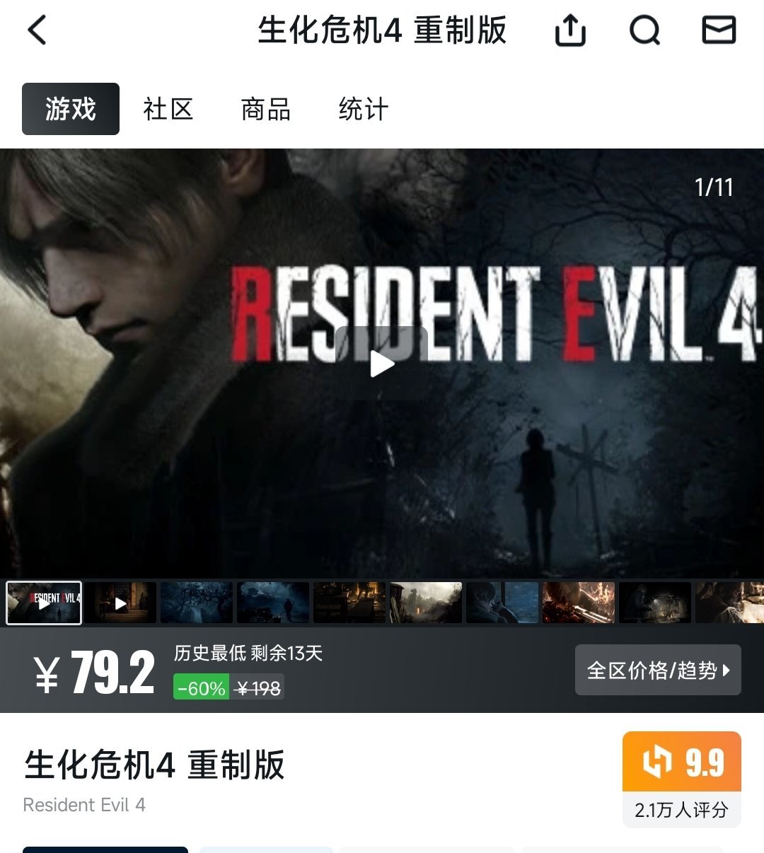 原價198元,本次折後僅需79.2元,作爲系列口碑巔峯的重製作品,遊戲在保留原版核心玩法的基礎上,全面升級了畫面、劇情與戰鬥系統,里昂營救阿什莉的經典故事以更沉浸的方式呈現,無論是新玩家還是老粉都值得入手。