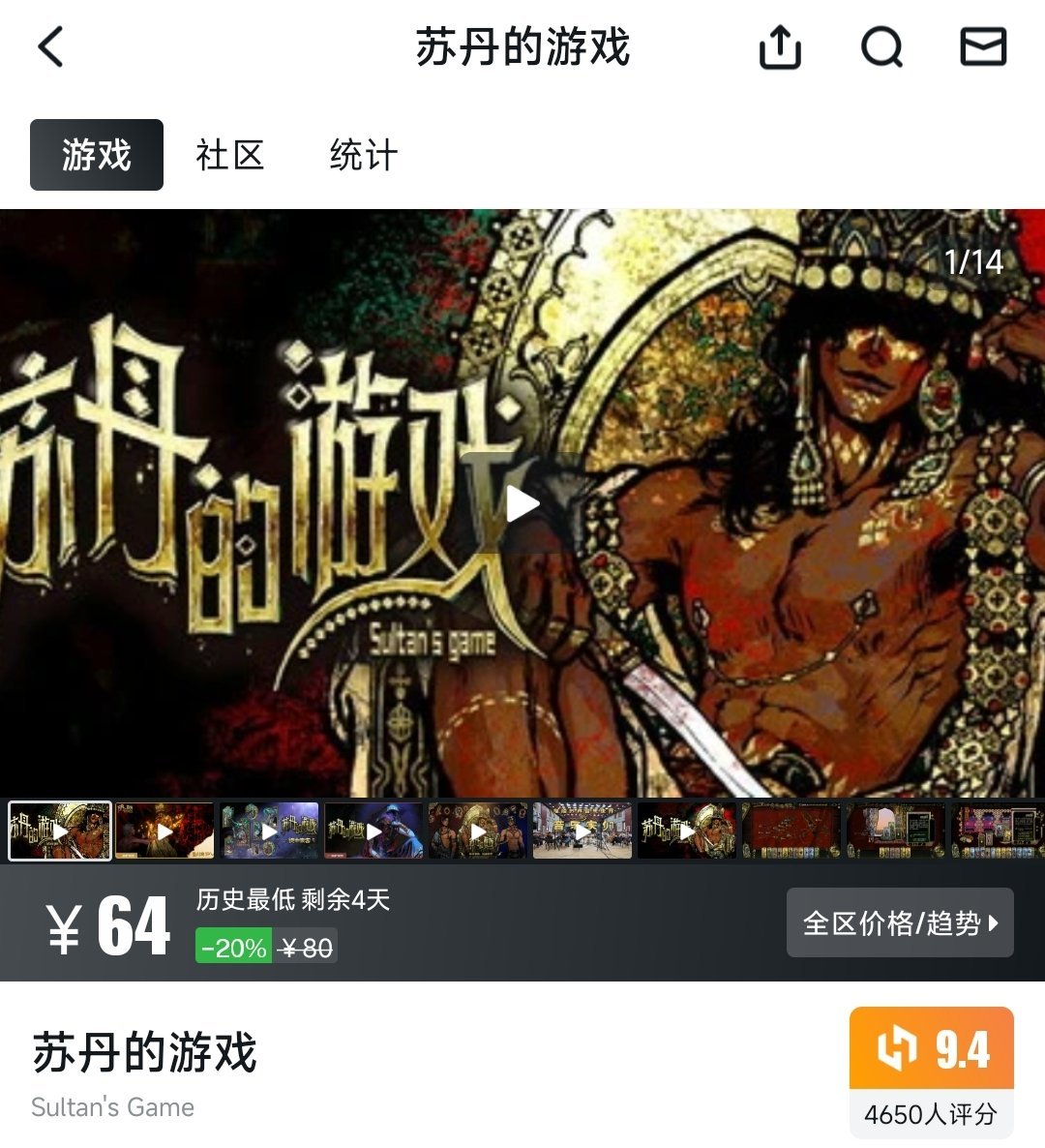 國產暗黑奇幻動作遊戲,原價80元,8折後64元,歷史最低價,剩餘優惠4天,評分9.4分。遊戲以獨特的手繪美術風格、深度的劇情敘事、硬核的戰鬥系統,打造了一個充滿異域風情的奇幻世界,是國產獨立遊戲中的口碑佳作,喜歡動作冒險類遊戲的玩家不要錯過。