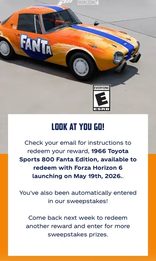 这个活动是为了庆祝 Xbox 成立 25 周年而推出的,参与即可领取五款游戏内的道具,正常是需要扫描联动饮料瓶上的二维码才能参与。目前活动已经上线,倒是省去了跑外边买饮料的成本。