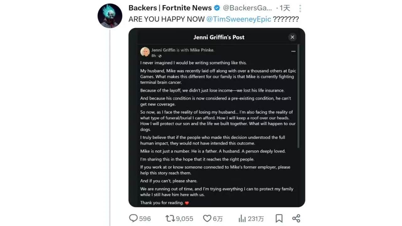 我發現網上的人總是容易被一些很有噱頭的事情吸引,往往會忽略一些本質的東西。本文我們客觀地聊一聊Epic大裁員事件,首先是腦癌晚期員工被裁在國外社交媒體上熱度很高。