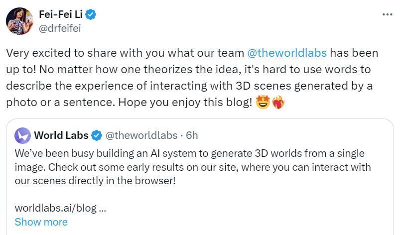 如果你稍微對於AI有所瞭解,你會發現有着AI教母之稱的李飛飛,2024年發佈過一款AI模型震驚行業,那個大模型最大的特點就是能通過AI生成一個可交互的世界。