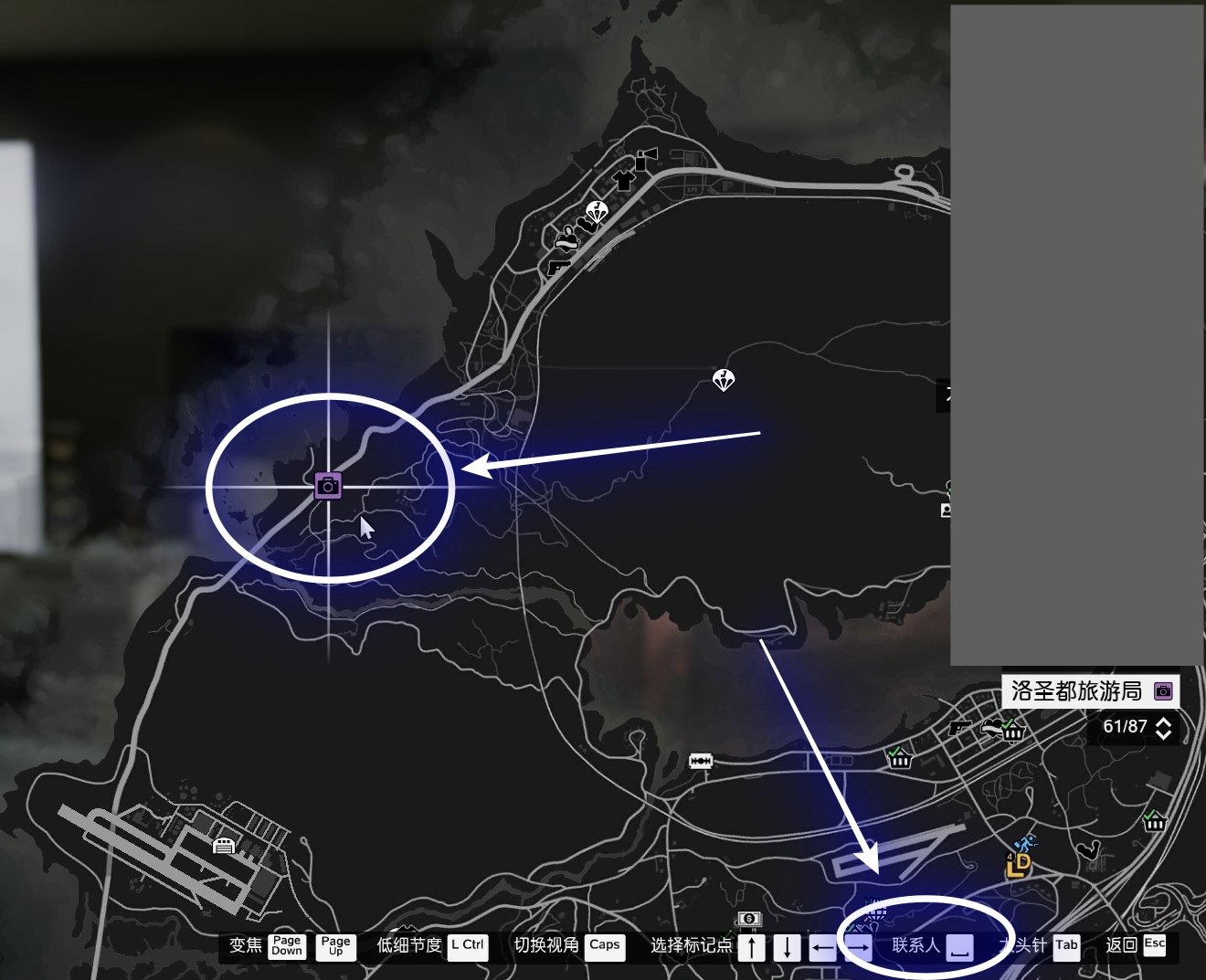 6.回到GTAOL游戏,按ESC打开地图,找到“洛圣都旅游局”图标。