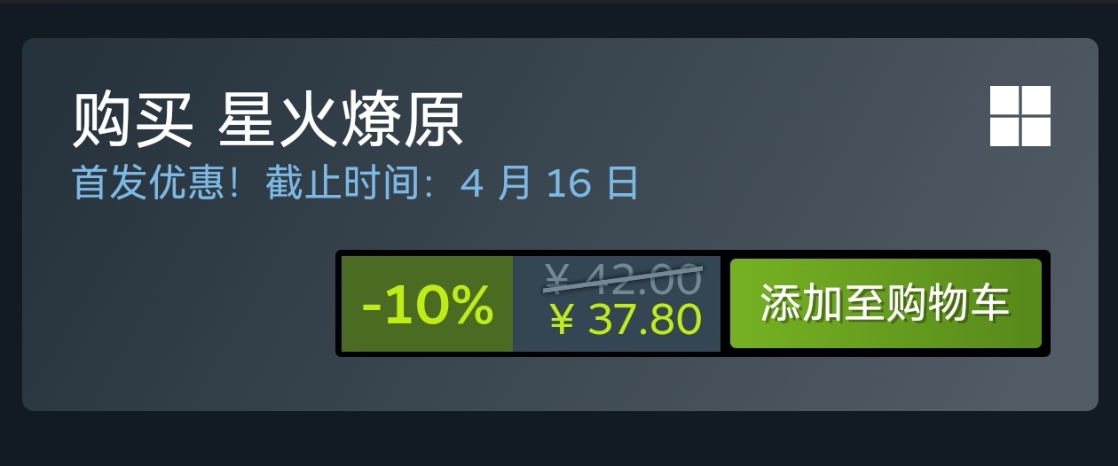 遊戲的價格爲42元,首發折扣爲37.8元,還算很優惠,畢竟不到一方(八方旅人一方就賣50),當然,現在遊戲處於EA階段,流程還不夠長,後面轉正式版也有可能漲價。