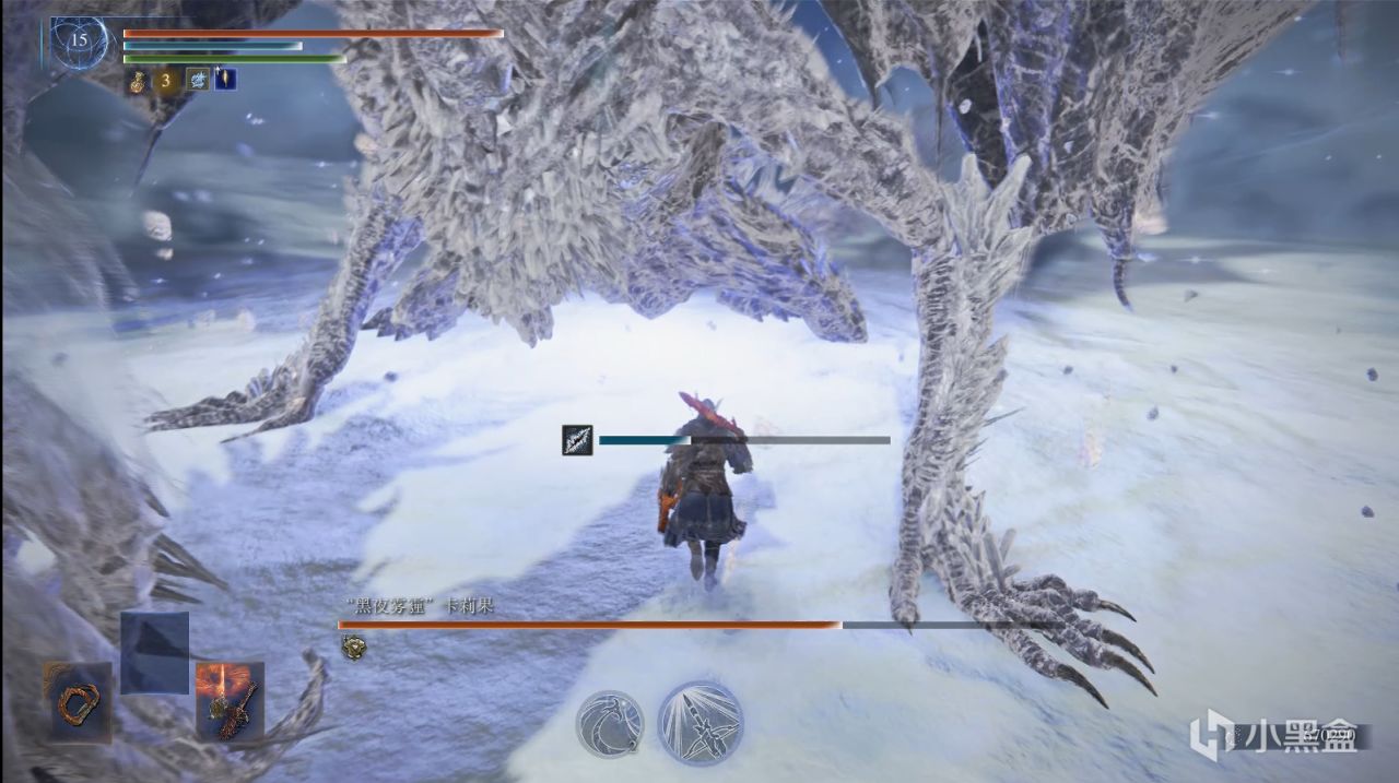 二连前抓,在前掌抓出时会有冰锥散出,其实就是告诉你别后滚