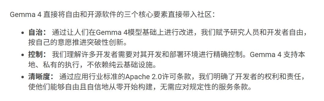 再说这次 Gemma 切换到Apache 2.0,这是 Gemma 系列最重要的一次转变。