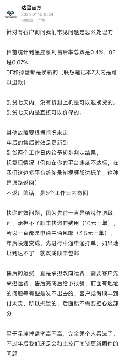 保修政策和發貨,支持個人送保,廠家承擔雙向運費。
