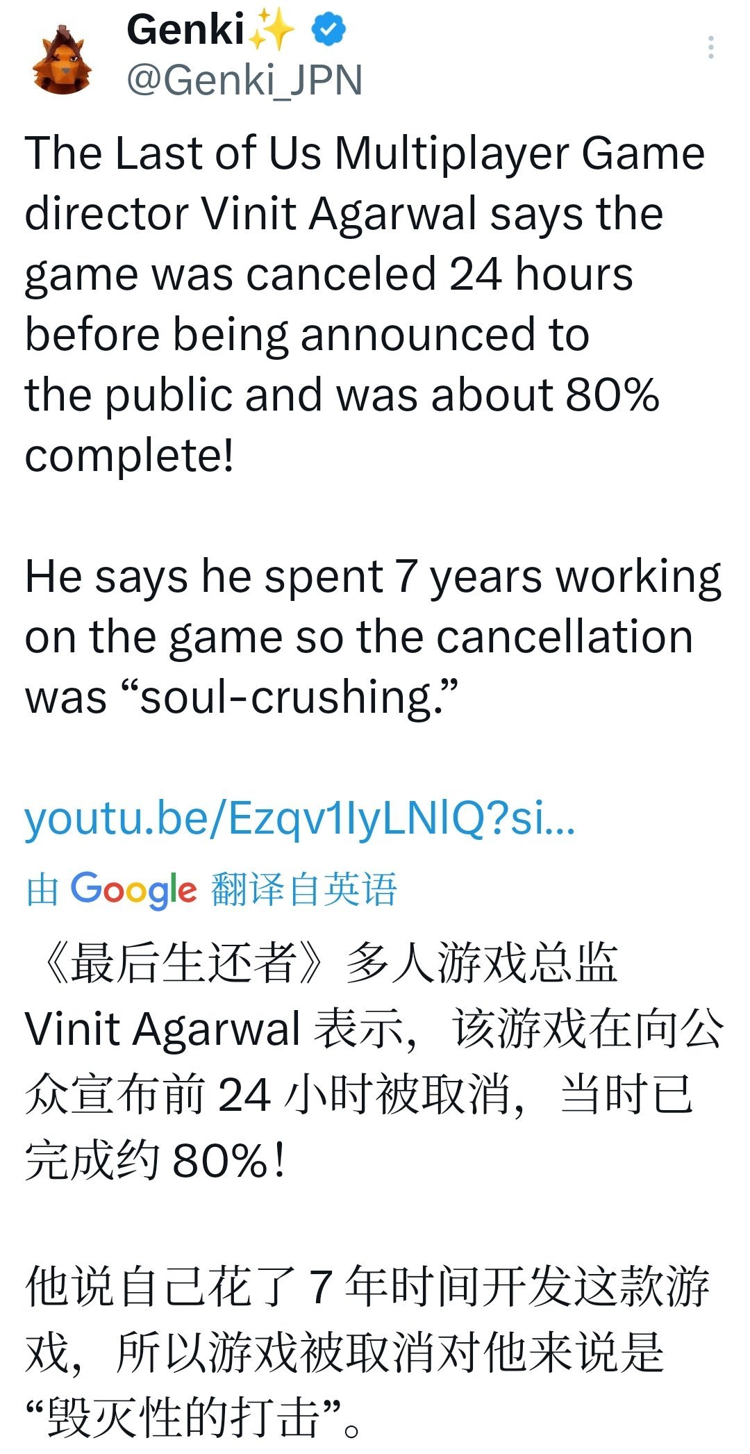 《最後生還者》多人遊戲項目被取消的詳細內幕:從接近完成到“心碎”砍掉。來自前頑皮狗遊戲總監Vinit Agarwal在Lance E. Lee的LelPodcast上的深度訪談。