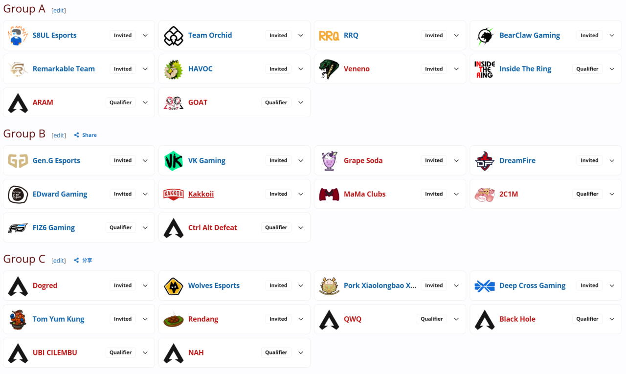 部分隊伍分組情況省流如下: