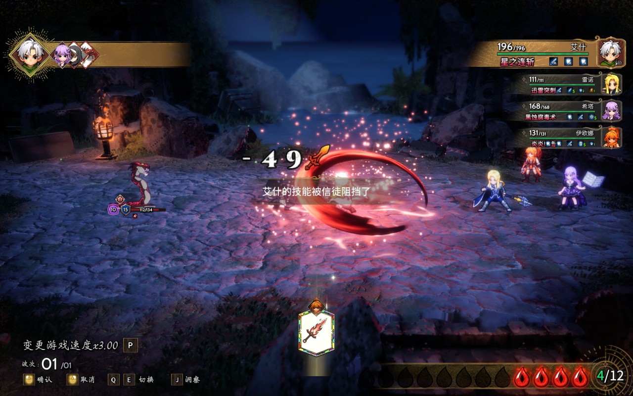 按J鍵可以偷窺敵人的下一步打算。這時候你可以調整自己人的站位,見縫插針。