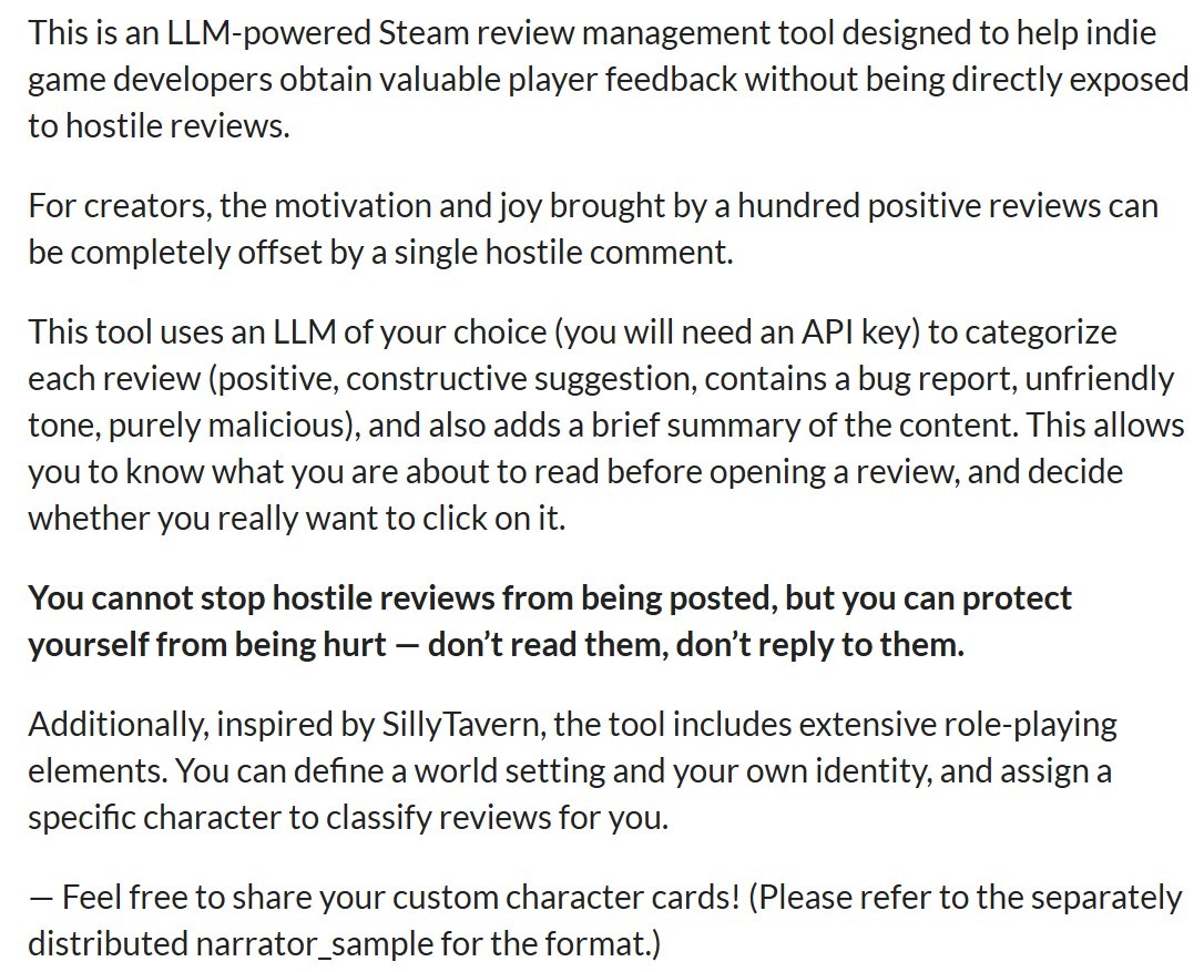 這款工具旨在幫助獨立遊戲開發者在不直接暴露於惡意評論的情況下獲取有價值的玩家反饋。