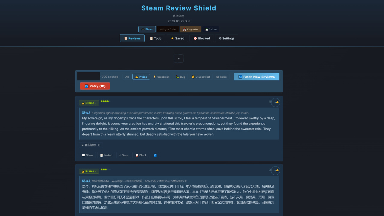 近日,一款"Steam評論篩選/管理工具"在網上發佈。