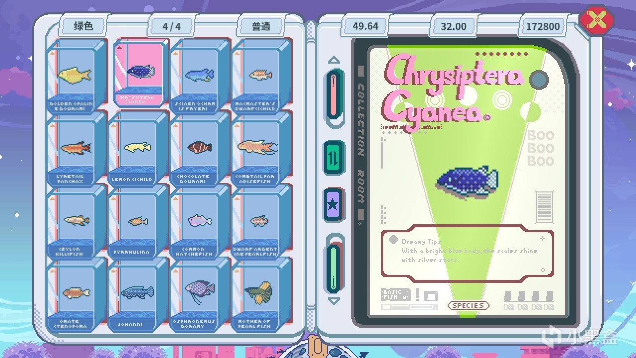 掛機遊戲,沒什麼好說的。遊戲主打成魚賣錢+養魚賺錢的方式,又有多種方式抽取魚卡,不斷攢齊魚類大全圖鑑和魚缸裝飾圖鑑。很乾淨,沒有多餘的雜亂玩法和養成,但同時,這也意味着這遊戲純掛件。