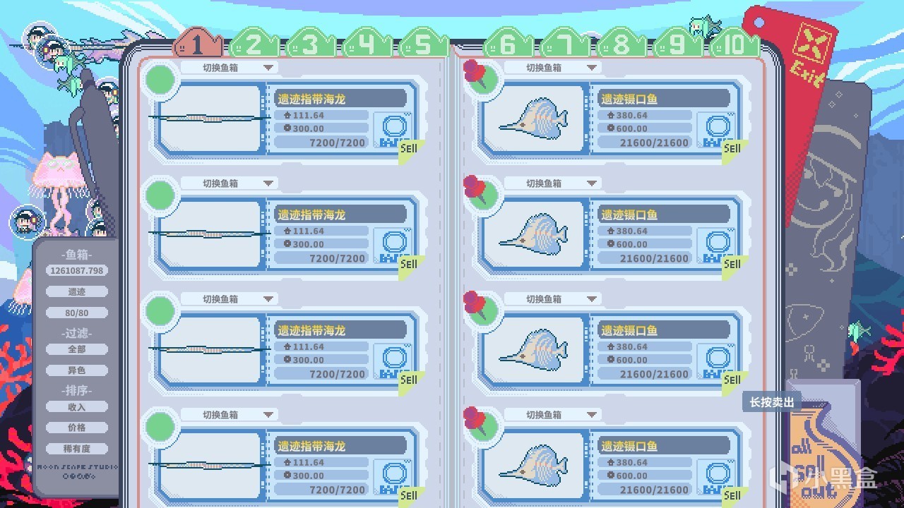 如果你覺得一條一條賣費勁,你可以把你要留的魚用圖釘定死,然後用“all in”全部出售,建議大家學會活用倉庫標籤,後面刷魚要用。