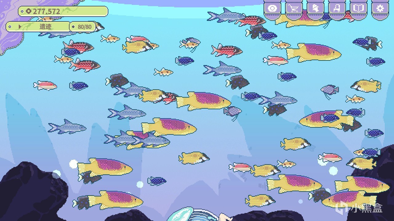 首先,遊戲的畫風絕對是一個接受度很高的正確方向,像素+可愛的整體風格。放眼望去,幾乎所有的掛機遊戲,要麼走卡通,要麼走像素,都離開不了接受度的問題。但這款遊戲魚缸的擺設,又更大程度上擴大了像素畫的美感。
