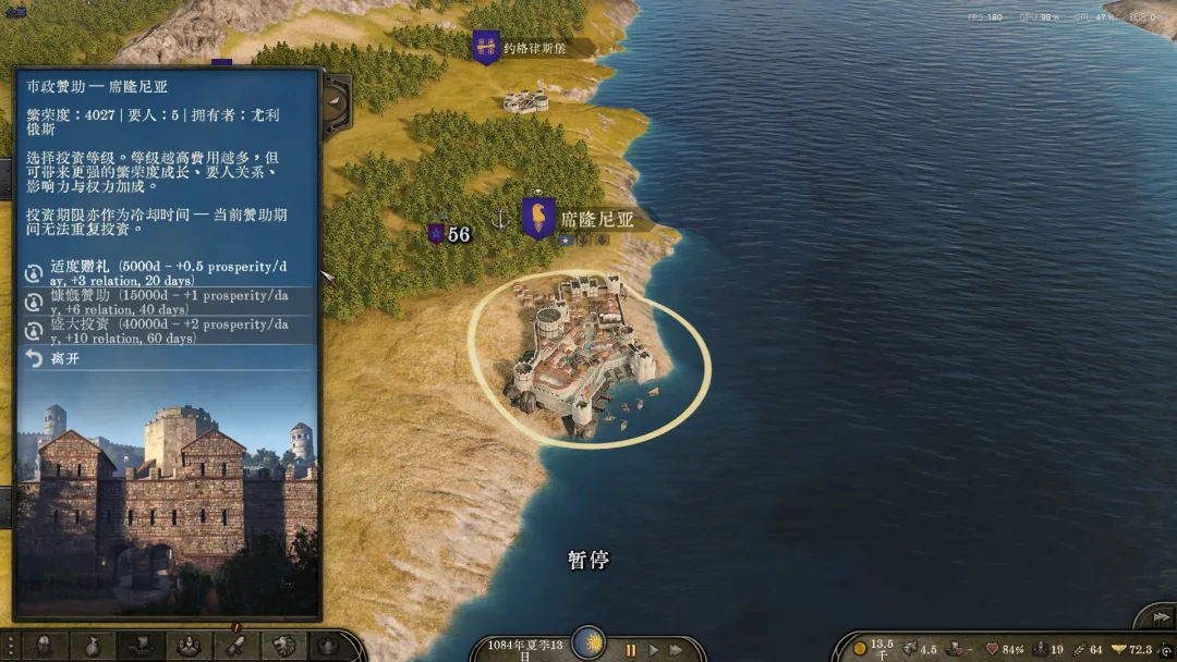 慷慨赞助:15,000d / 40天 / +1.0繁荣/天 / +6关系 / +5.0影响力 / +10权力