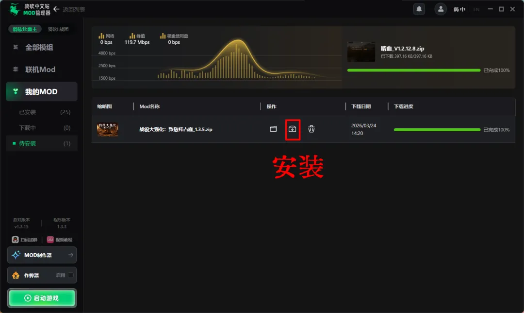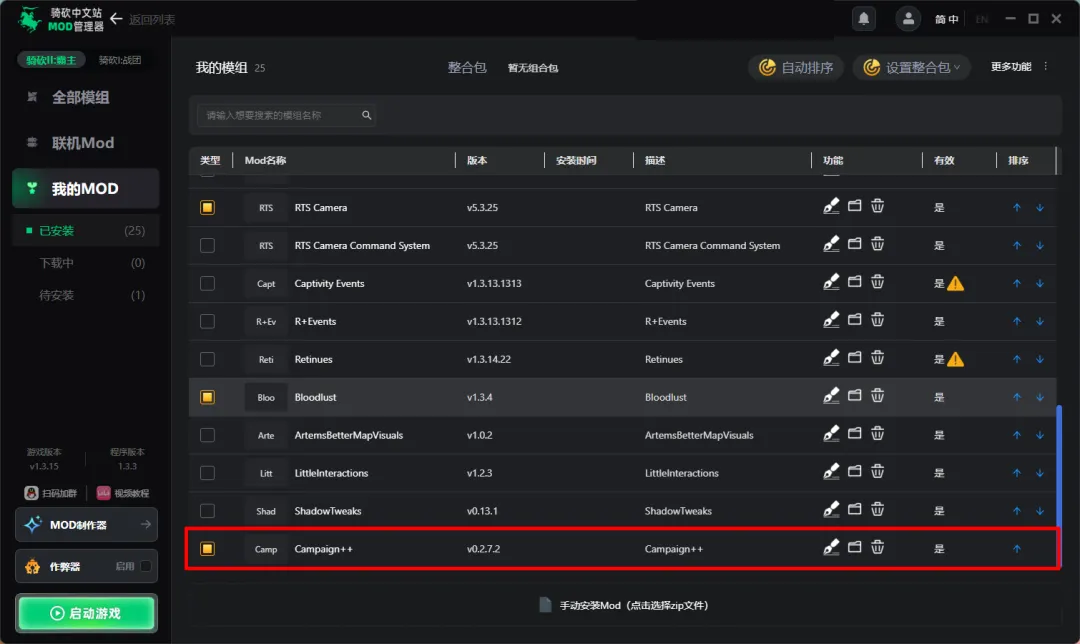 1、打开骑砍中文站的MOD管理器,下载与了解管理器详情可以浏览 【官方推荐】全网MOD一键安装的神级工具《骑砍中文站Mod管理器》V1.01正式版发布