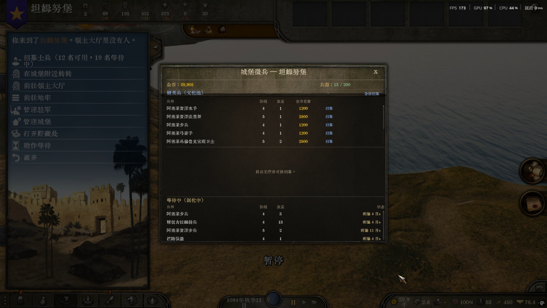 1.当前 — 点击定居点的详细资料(兵源丶回复丶压力丶蹂躏丶疲惫)