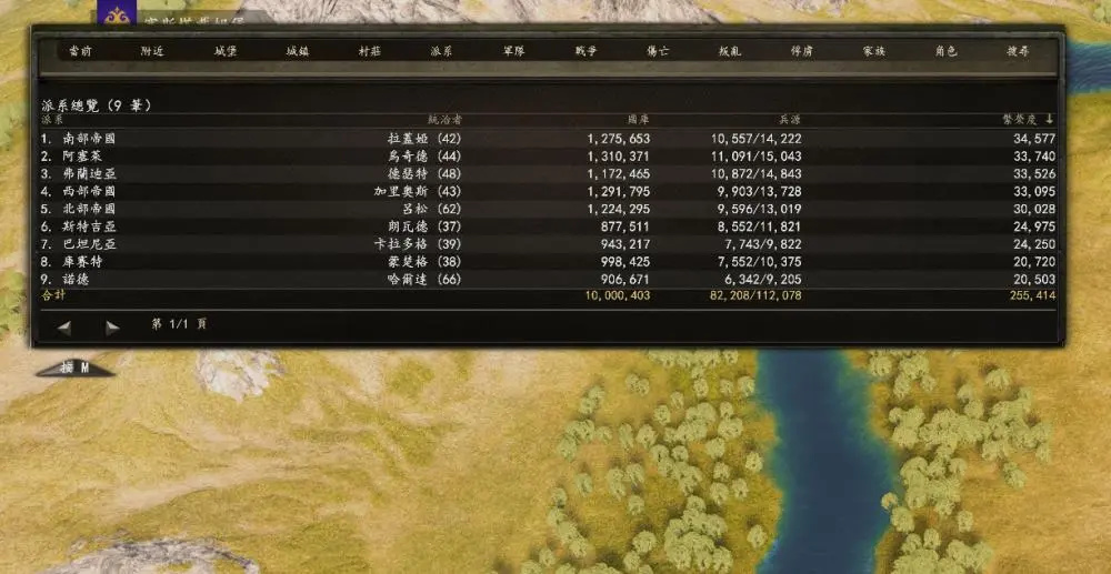 6.派系 — 各派系总计(兵源丶繁荣度丶国库)