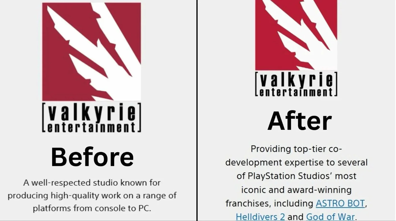 比如之前Valkyrie Entertainment的介绍里,还写着“从主机到PC全平台开发”,现在直接改成了“专注为PlayStation的顶级IP提供开发支持”,连PC俩字都不提了,态度直接180度大转弯。